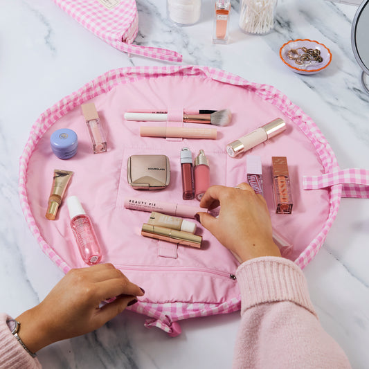 Parachute Drawstring Kosmetiktasche - Rosa kariert
