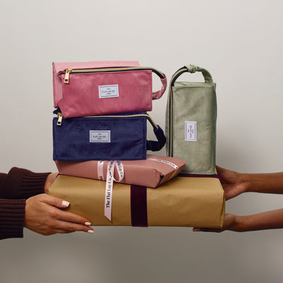 Parachute Drawstring Flat Lay Makeup Bag - Red Gingham