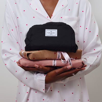 Parachute Drawstring Flat Lay Makeup Bag - Sweet Pink Hearts