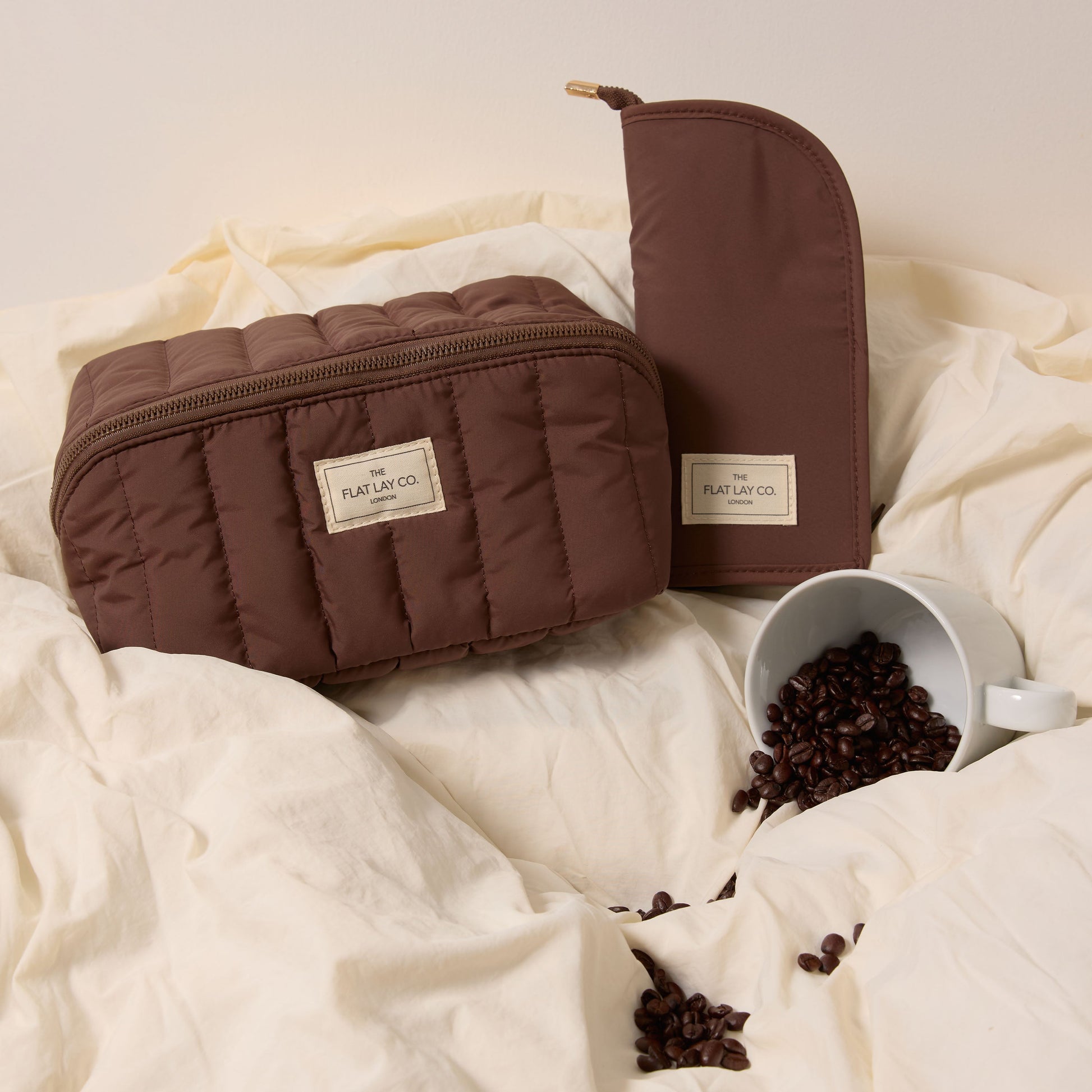 Part of our Coffee Club Collection: Inspired by mornings, built for beauty. Featuring trending Espresso Brown colourways, a ditsy Patisserie print and a brand new Essential Pouch.