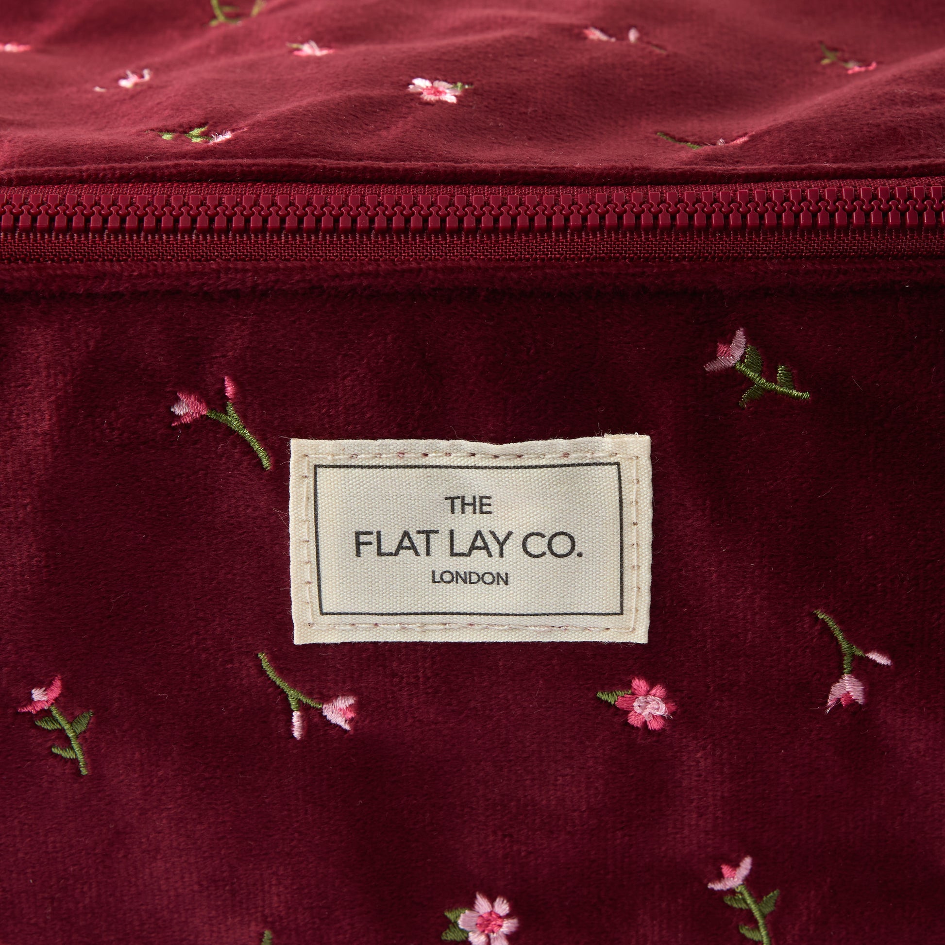 Box-Form Kosmetiktasche - Bordeaux Ditsy-Rosen Samt