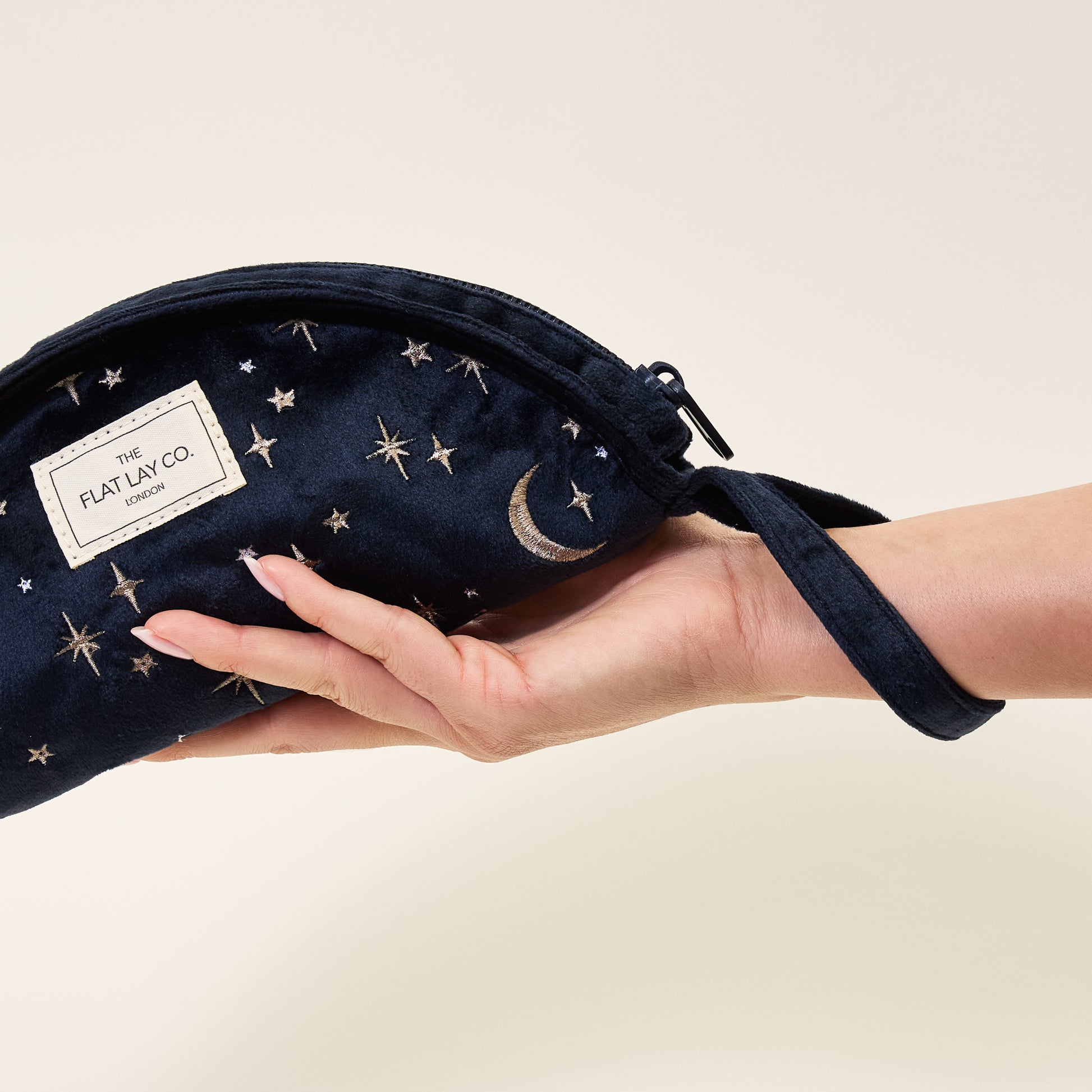Lunar Schminktäschchen - Bestickter himmelblauer Samt